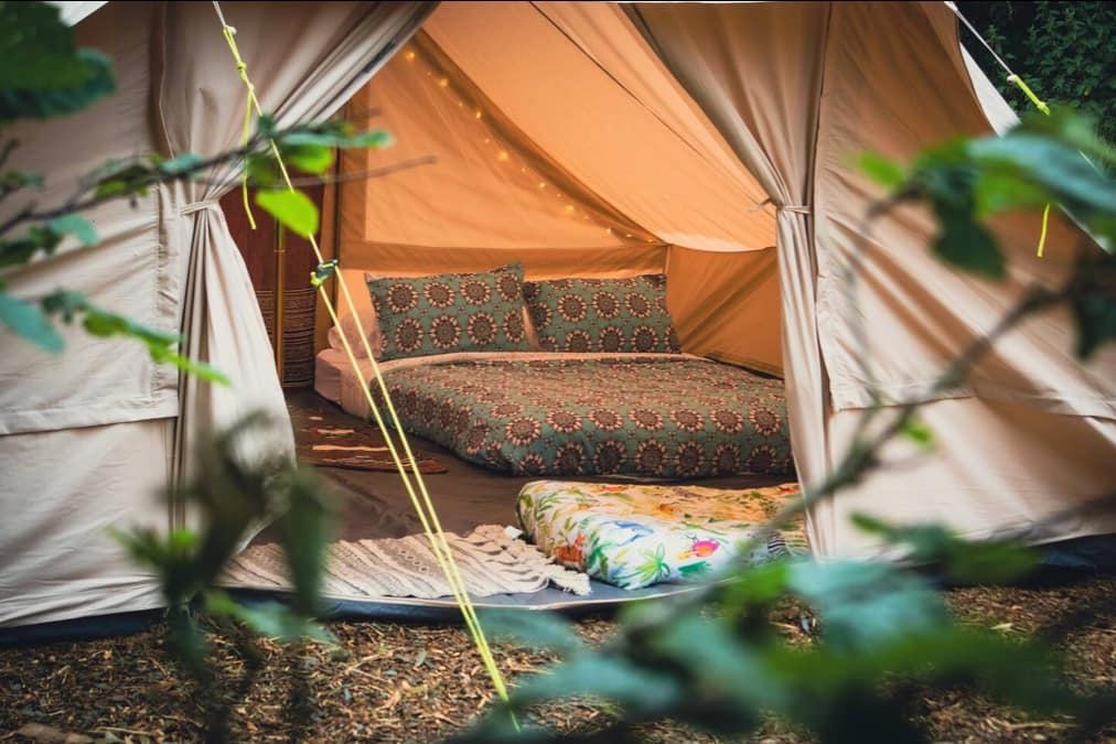 Our Glamping Bell Tents are very spacious yet cosy. The beds have proper mattresses and luxury bedding, heavy duvets and of cause extra pillows! They also stay really warm at night with the electric heaters that are provided.