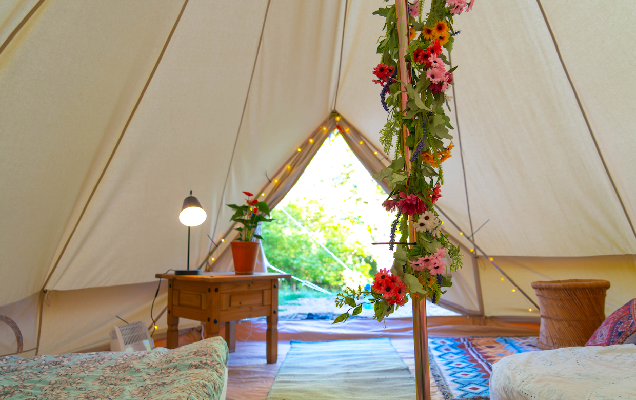 Our Glamping Bell Tents are very spacious yet cosy. The beds have proper mattresses and luxury bedding, heavy duvets and of cause extra pillows! They also stay really warm at night with the electric heaters that are provided.
