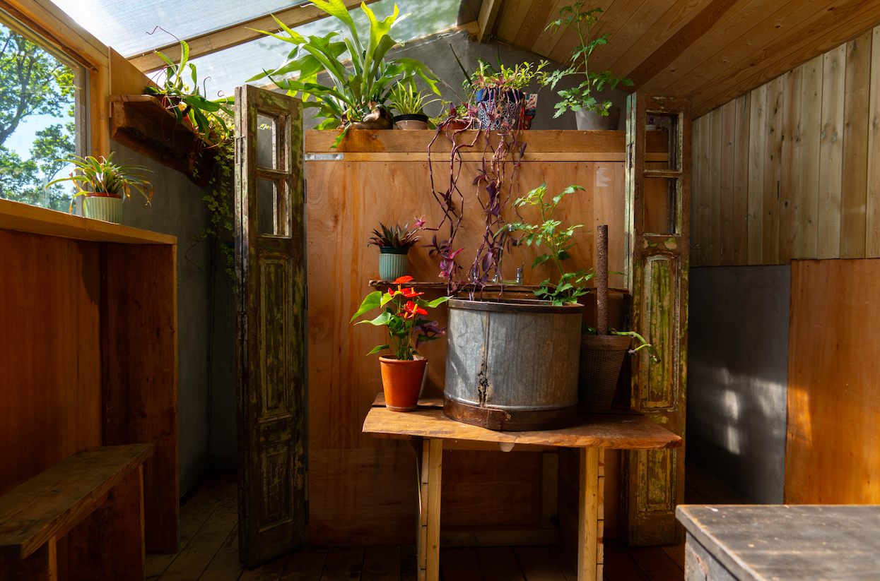 Perfect for one on one treatments or for small groups to gather. Often used asa massage room or journaling space surrounded by plants and always a warm location to ponder or read, this really is one of our favourite areas of the site.